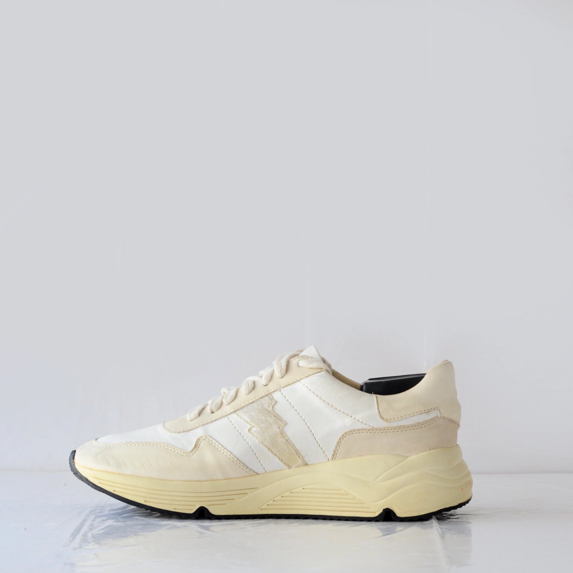 Smooth matte leather or high-quality synthetic overlays paired with breathable textile/mesh underlays.